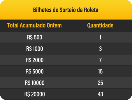 Com base no total de depósitos feitos na plataforma a cada dia, você receberá um número correspondente de bilhetes de rifa no dia seguinte.